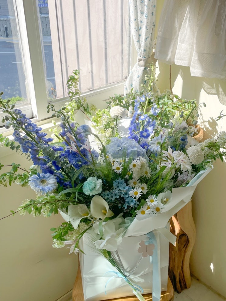 아정당에서 예약주셨던 배우 원빈님을 위한 화이트 블루 대형꽃다발입니다! 아정당 광고 모델이 되신 원빈...