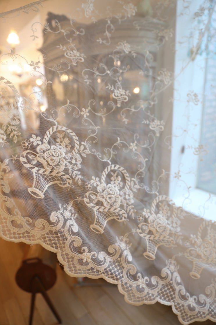 좋은 가격) 꽃이 가득 피어있는 바스켓이 사방에~ 빈티지 레이스 커튼 세트 (2장 남음)