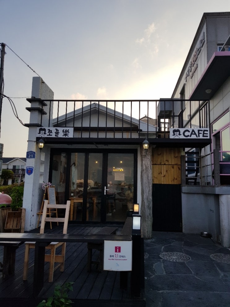 여행첫날 식사 후 들렀던 카페 쪼끌락 제주 사투리로 쪼끌락하다는 작다 쬐끔하다 느낌 카페는 정면에서 볼...