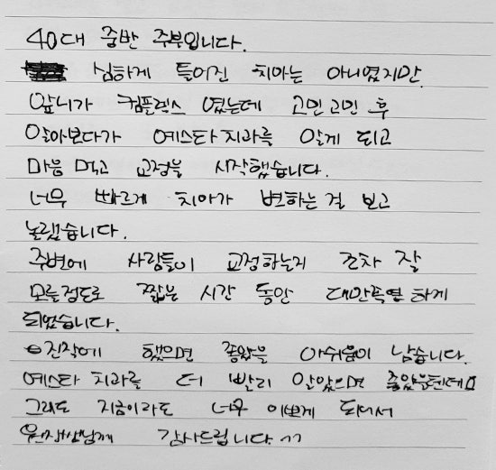 *환자분의 동의를 받고 올리는 치료 후기 입니다.* 결혼을 앞두고 콤플렉스였던 아랫니 치아를 앞니 부분교...