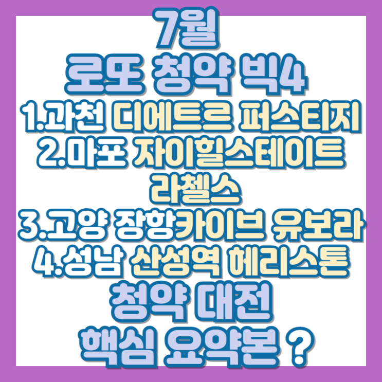 (과천 디에트르 퍼스티지 VS 마포 자이힐스테이트 라첼스), (고양 장항 카이브 유보라 VS 성남 산성역 헤리스톤) 청약 대전 승자는? (feat. 7월 1주차 청약 빅4 요약)