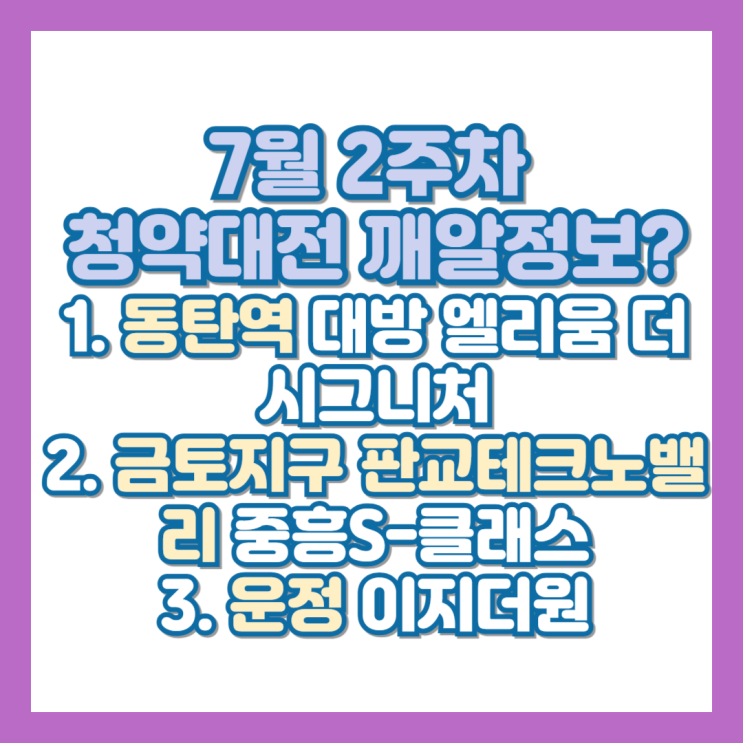 7월 2주차 청약대전 깨알정보?(동탄역 대방 엘리움 더 시그니처, 금토지구 판교테크노밸리 중흥 S-클래스, 운정 이지더원)
