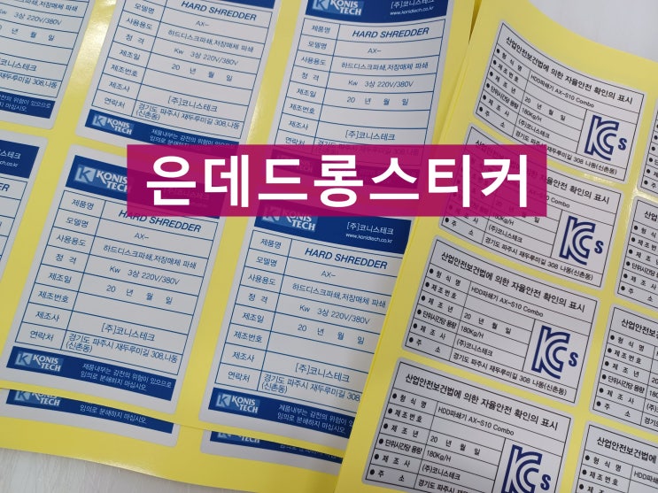 산업용스티커의 소재는 다양합니다. 종이재질의 아트지, 폴리에스테르계열의 유포지,pet계열의 스티커, 전...