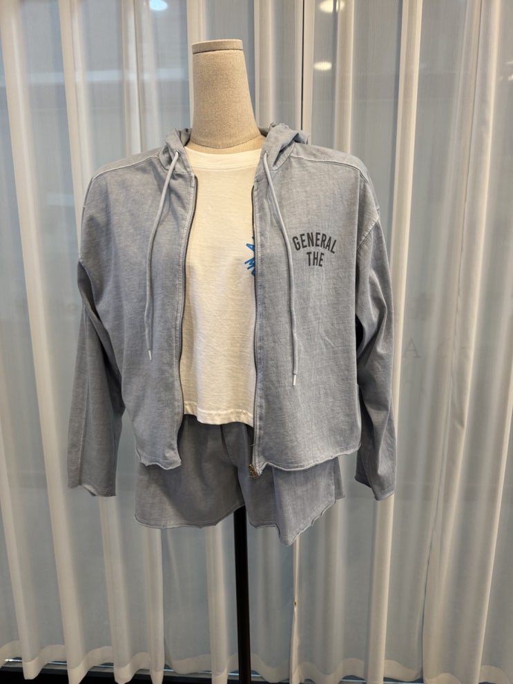 제너럴 레터링 반바지 후드 집업 세트 컬러 : 크림, 소라 ※ 모니터 해상도와 조명에 따라 색상 차이가 있...