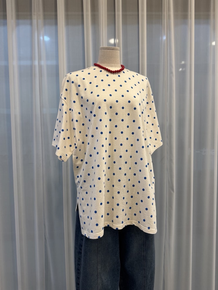 도트 패턴 루즈핏 반팔 티셔츠