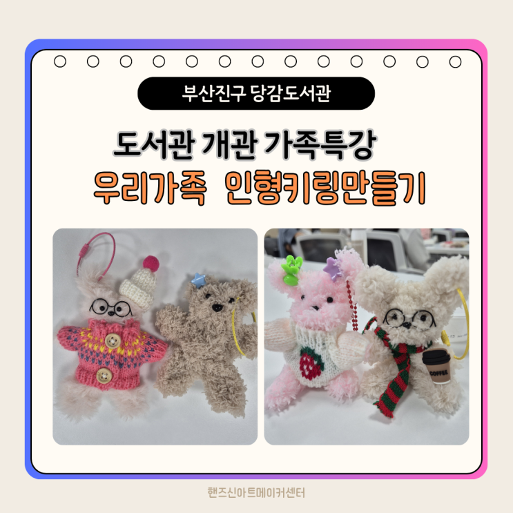 부산 진구 당감도서관 개관 가족특강 우리 가족 모루인형 키링만들기 인기최고!