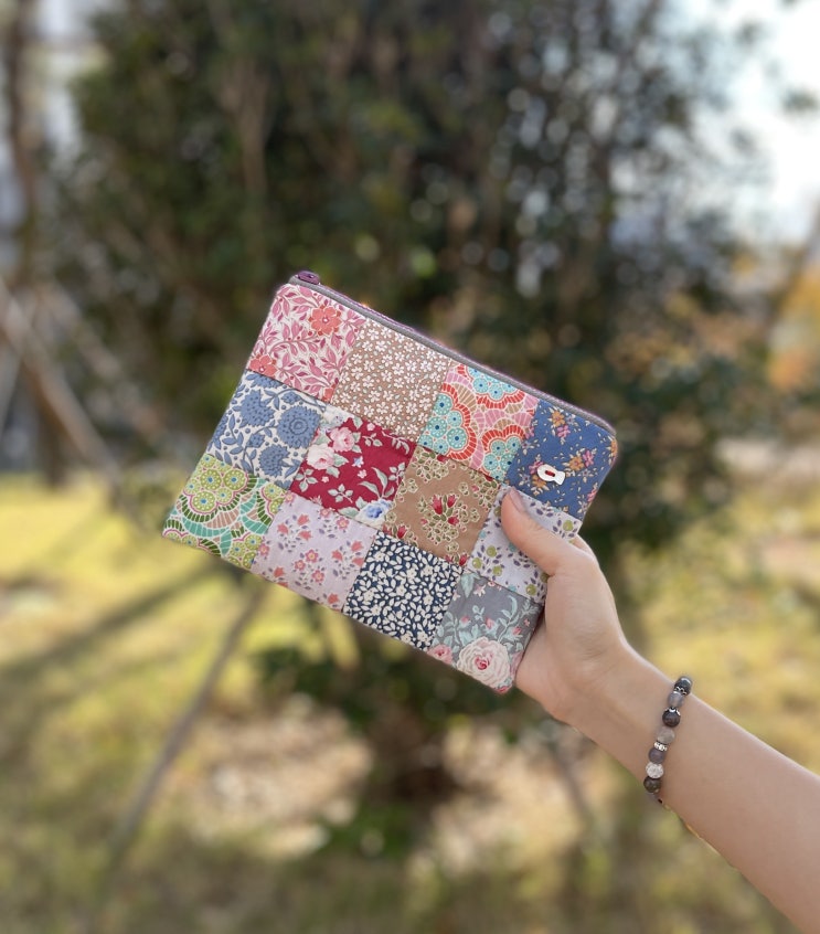 2025년 1월의 첫 바느질은 초록 파우치 큰 버전입니다 아끼는 초록계열 원단들로 패치 원단만 준비해 봤어...