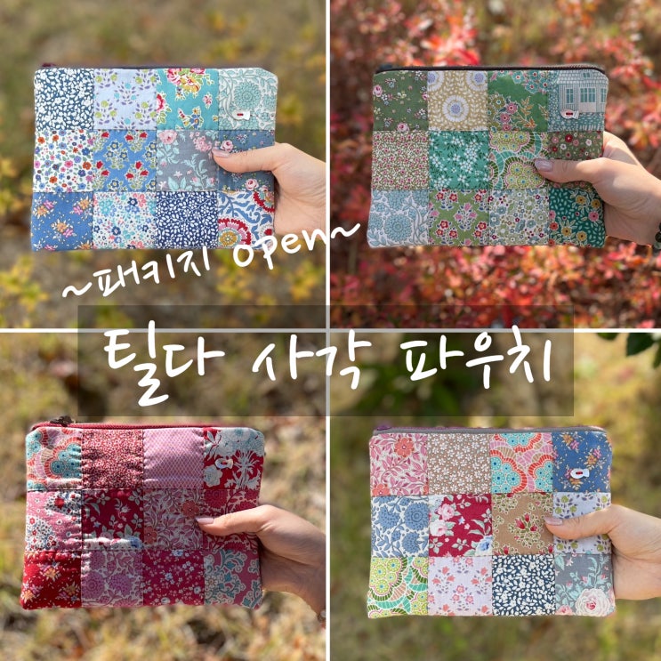 네가지 색 틸다 사각 파우치