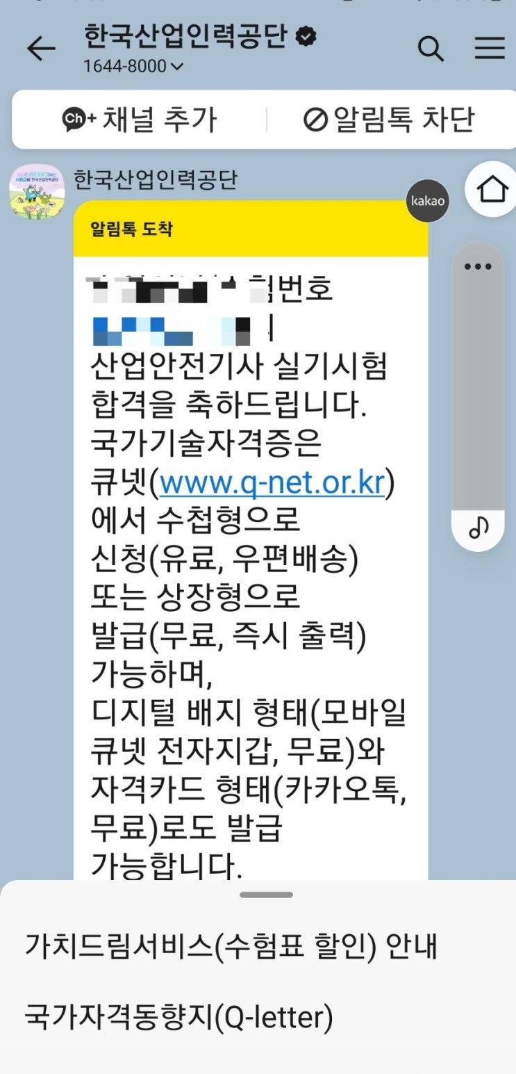 2025년1회차 산업안전기사에 합격했어요. 카카오톡 알림을 신청해서 오전9시에 합격 알림을 받았어요. 다행...
