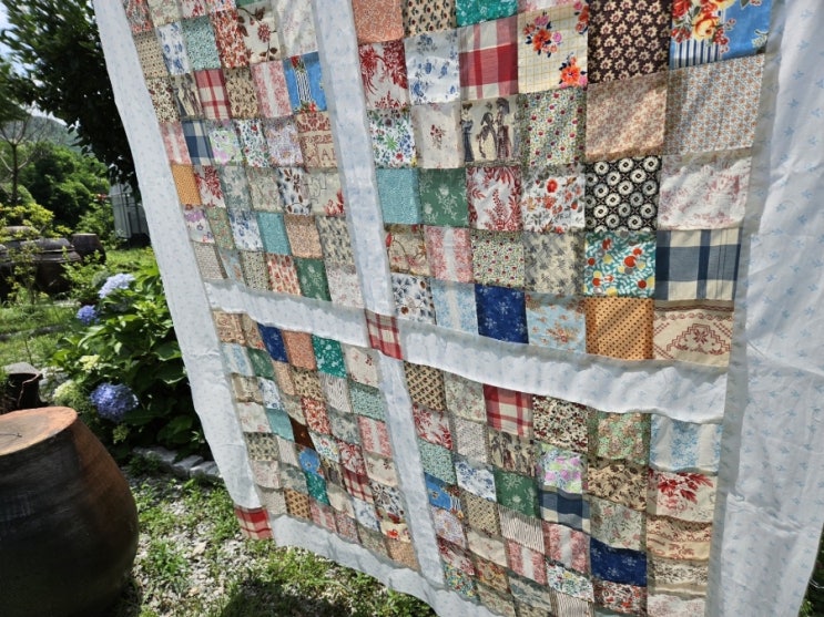 오늘 중복이라는데.... 빨리 더위가 갔으면 좋겠어요 바람은 부는데 쬐금 시원해요 빈티지네모패치이불 패...