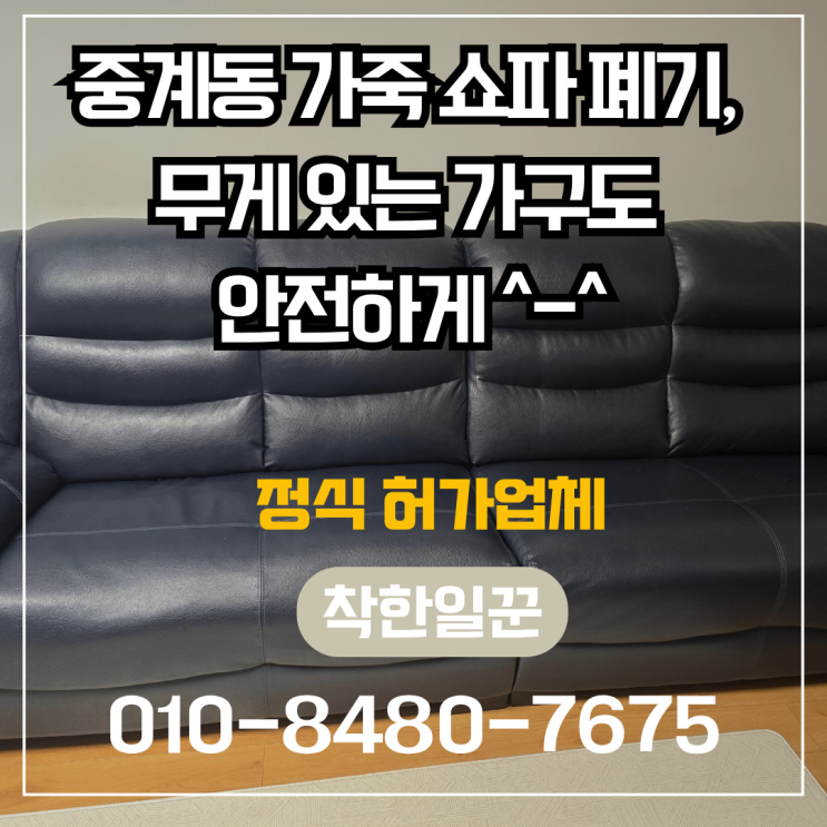 중계동 가죽 쇼파 폐기 안녕하세요. 폐기물 처리 전문 업체 착한일꾼입니다. 오늘은 노원구 중계동 지역에...
