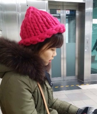 실 : 모델망고 핫핑크색 1볼 중 4/5 바늘 : 25 mm 줄바늘 18코 코잡아서 원통뜨기로 8단 올라가다가 2코모...