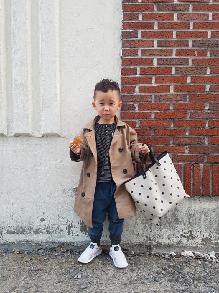 도트무늬가 예쁜 린넨라미네이트로 만든 가방이예요 둘째 똥강아지 모델로 등장 ㅋㅋㅋㅋ 가볍게 외...