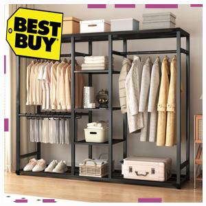 실용적인 MOFINE 철제 스탠드 시스템 드레스룸 행거 수납행거 옷장행거 선반형, 블랙 더블 시스템 선...