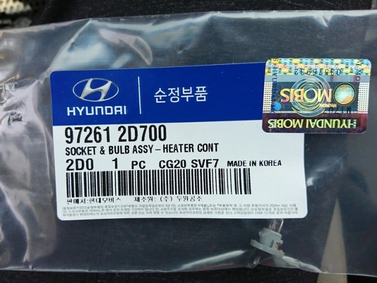 명칭 : 소켓 어셈블리 - 히터 컨트롤 (공조기 전구) 품번 : 97261-2D700 가격 : 627원 (개당) - 5개 필요 ...