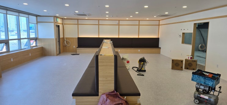 카페붙박이쇼파 제작 쿠션 설치 후기