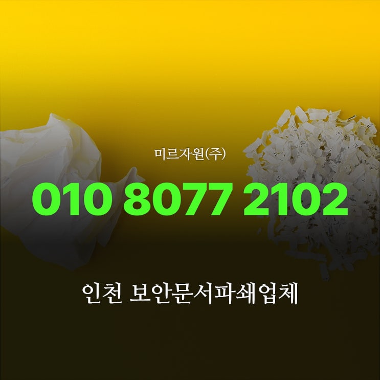 기업과 기관에서 발생하는 중요 서류들의 안전한 처리는 정보 관리의 핵심이죠. 이와 관련해 오늘은 인천 ...