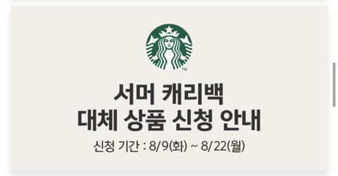 스타벅스서머캐리백 대체상품 굿즈 신청가능 [8/9 (화)~ 8/22 (월)]