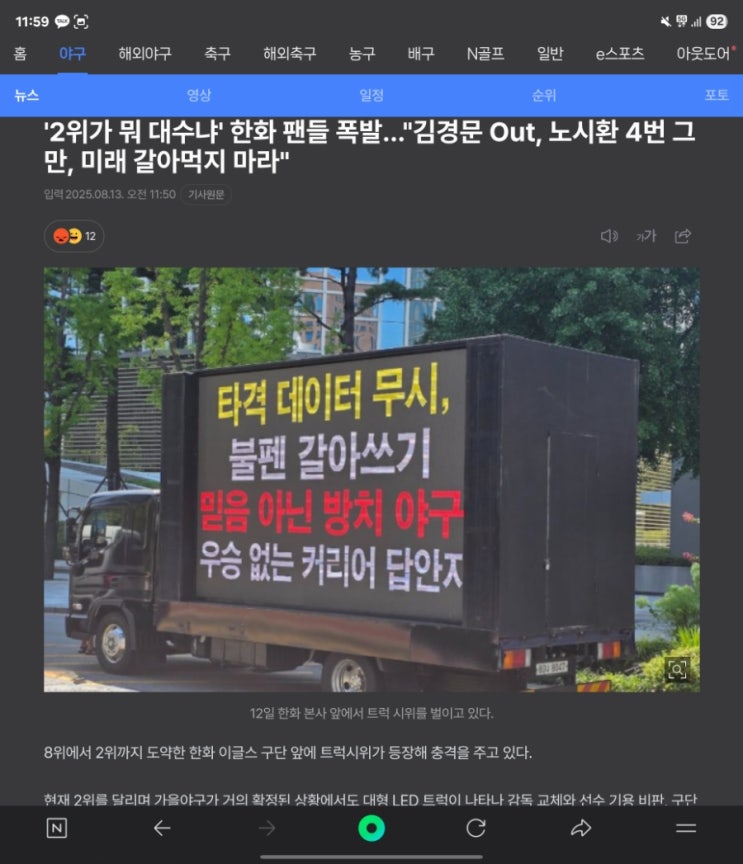 일부 한화팬.. 김경문 OUT 노시환 4번그만. 도 넘은 비판 비난