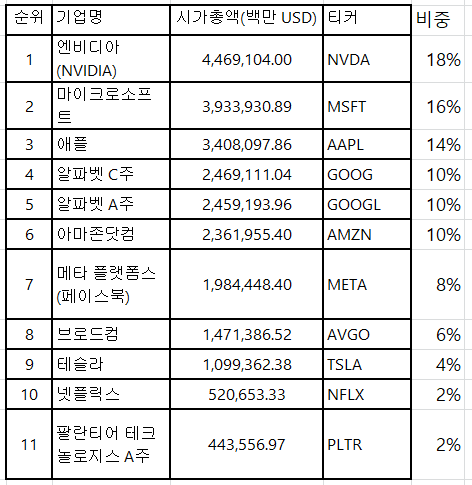 나스닥 시가총액 순위 (25년8월 기준)