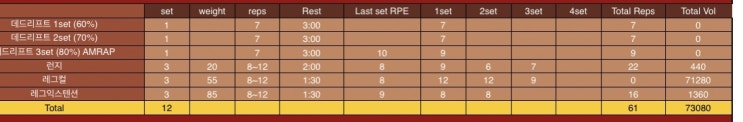 월, 화 이틀간 운동 후 수요일 휴식후 목요일 (오늘) 3일차 운동 진행!! 오늘의 메인 운동은 데드리프트.. ...