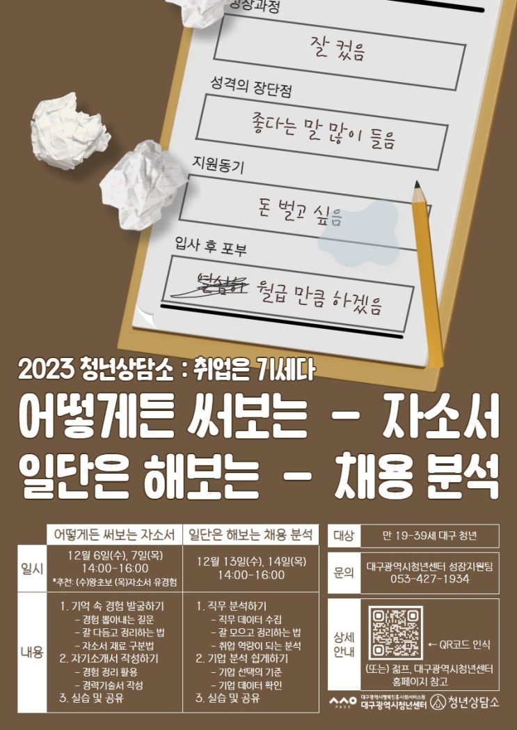 대구시청년센터 자소서작성,채용분석 강의 선착순 모집!