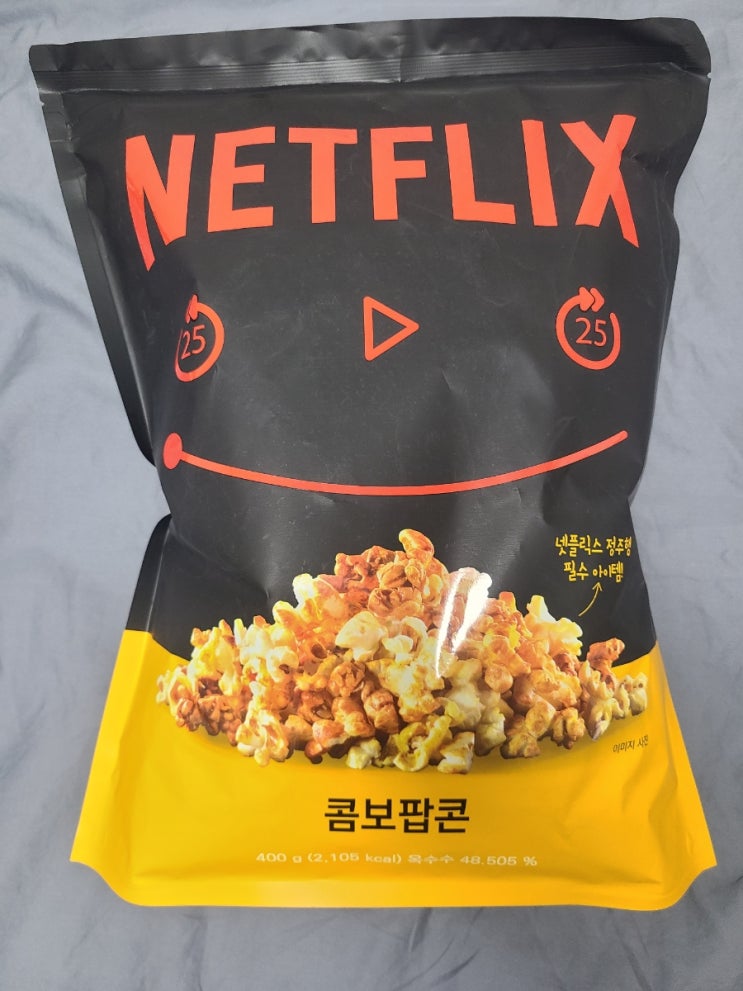 오늘 소개할 내용은 #NETFLIX팝콘 입니다. #GS25 편의점에 방문했다가 구매했습니다. 대용량 봉투...
