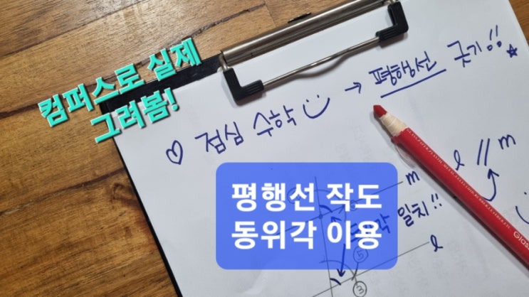 안녕하세요! 수학으로 행복을 전하는 PJH 수학선생님입니다^^ 오늘은 평행선 작도 과정을 소개해 볼게요...