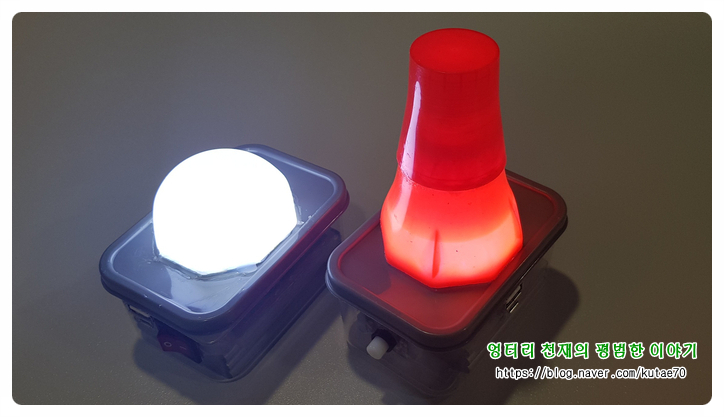 자작 91. 92 휴대폰 배터리와 충전모듈과 usb캠핑전구로 조명등 만들기 (2)
