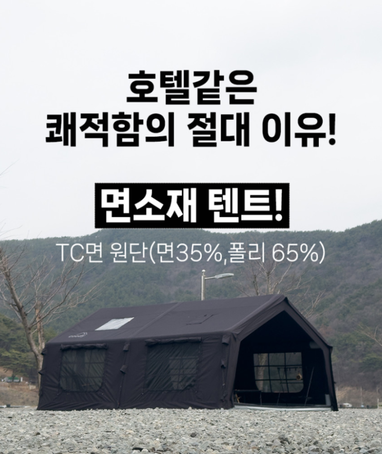 호텔 스위트룸에 들어선 듯한 캠핑 쿠디 에어텐트 파밀리아와 함께라면 가능합니다. 가로 3.6m × 세로 4.8m...