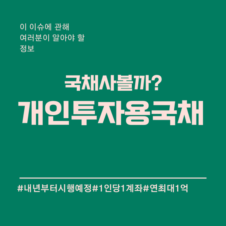 안녕하세요 픽슈입니다. 오늘은 개인투자용국채에 대해 알아보려고합니다. 금리가 오르면서 채권에 많은 투...