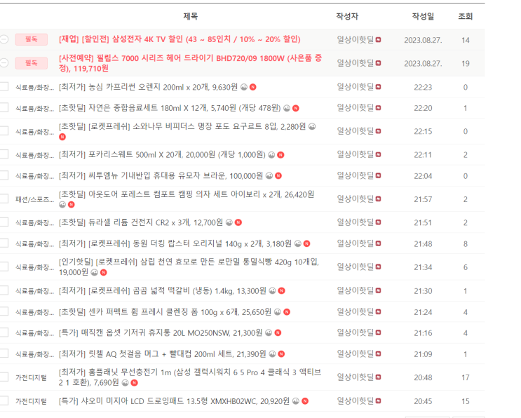 전자제품, 생필품 등 핫딜 정보 올렸습니다. 최저가 상품 확인하러 오세요 ▶▶ 핫딜정보 보러가기 (링크) ...