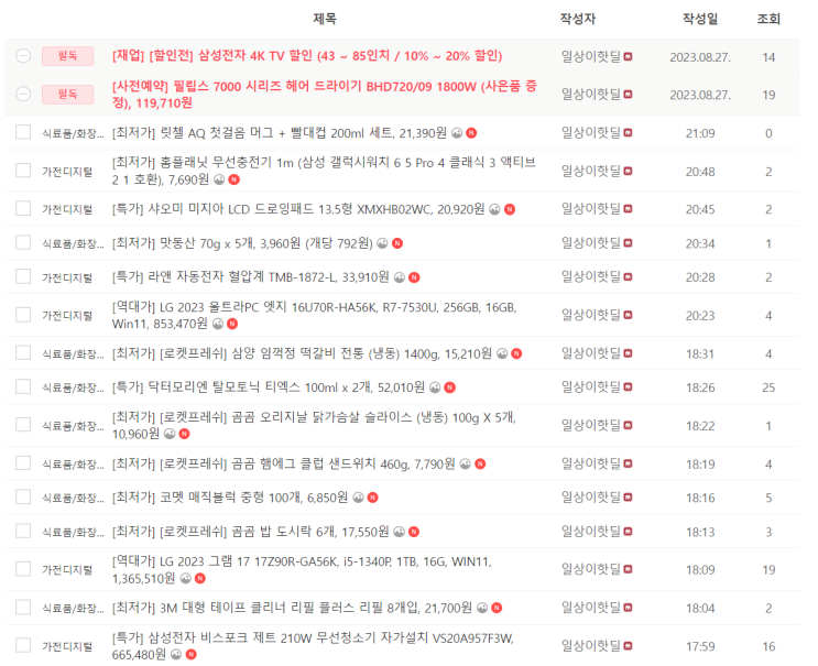 전자제품, 생필품 등 핫딜 실시간 업데이트 (08/29 21:00~)