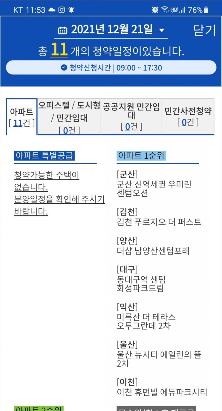 2022년1월12일 청약홈일정