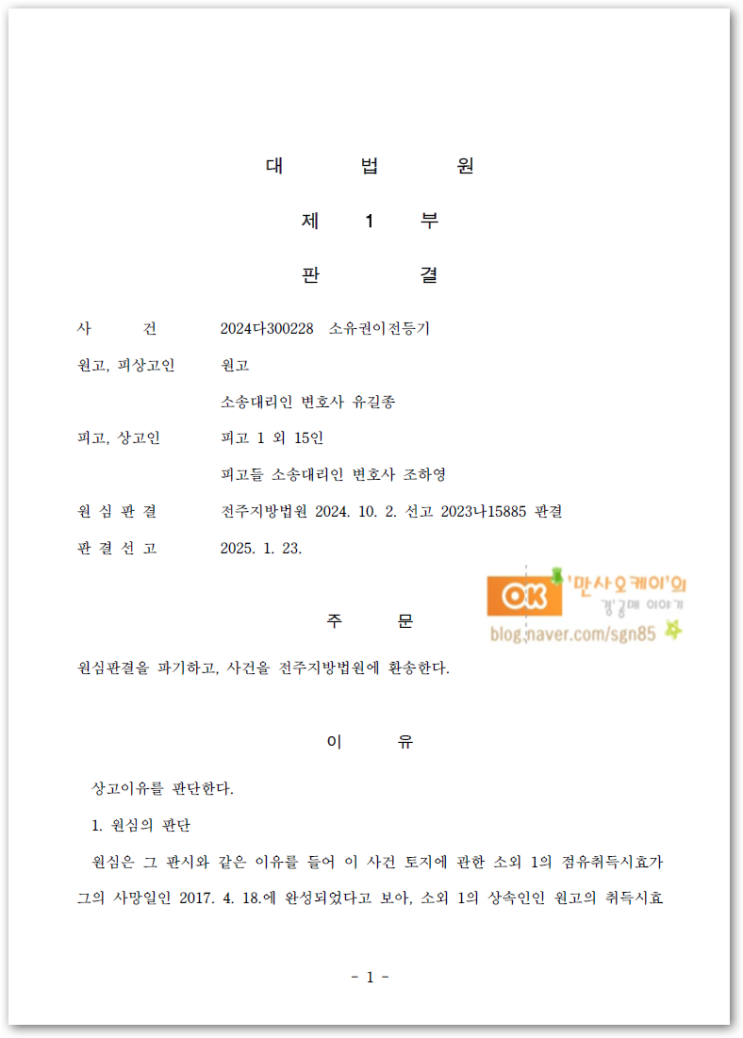 [대법원 판결] 타인 토지 위 분묘소유자가 점유취득시효를 이유로 소유권 인정을 주장한 사건