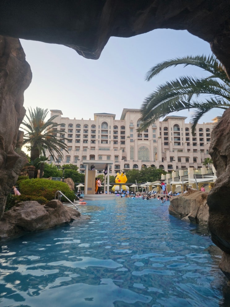 롯데호텔 야외수영장 해온 1층에 있다. 수영장 가는 길 호실 말하고 들어가면 됨 사람들 저 튜브 가지고 놀...