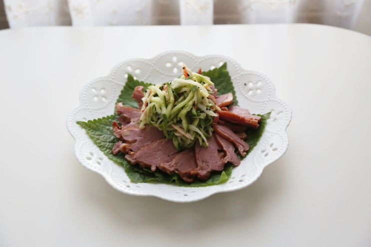 훈제오리고기를 부드럽고 담백하게 먹을 수 있는 레시피~ 상큼하고 새콤달콤하게 먹는 오이크래미냉채와의 ...