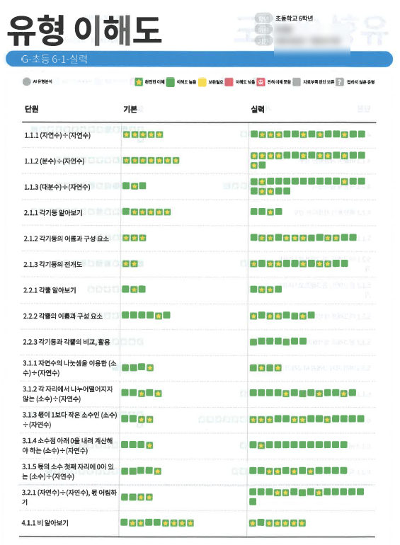 초등 6학년 1학기 전범위에 대한 기본&실력과정의 그린챌린지 완성을 축하합니다.~ 창도초 박O영 자운...