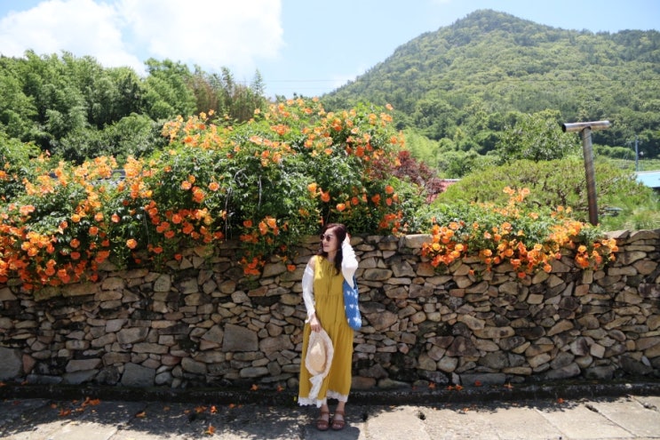 남해 돌담과 어우러진 쨍한 색감의 능소화가 아름드리 피어 있는곳... 바로 지금 만개만개 7월 둘째주 까지...