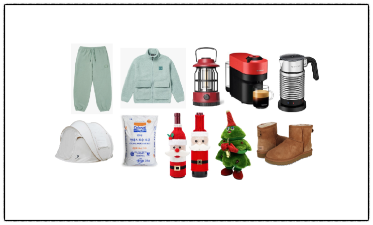 미우새 한혜진 와인 덮개 어그 부츠 소금 트리 인형 캠핑 랜턴 거품기 커피 머신 텐트 재킷 바지 옷 373회