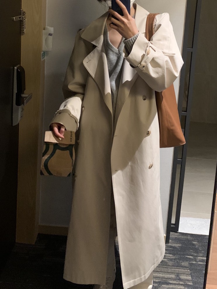 올해 상반기에 나온 트렌치코트인데 고민하다가 매물을 구해 구매했다 164에 44 사이즈 기준 크다..! 기장 ...