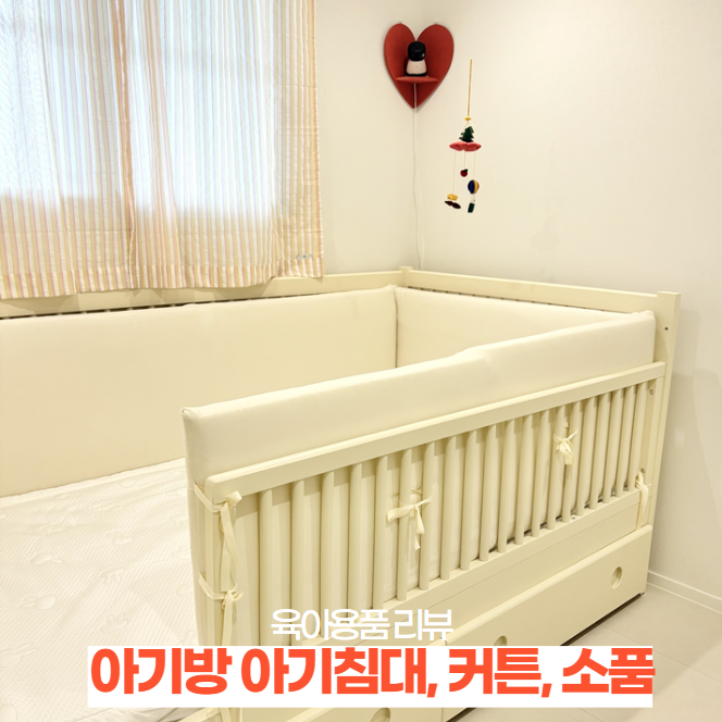아기방 꾸미기 l 아기침대 수납형 원목, 시몬스N32토퍼, 커튼, 소품