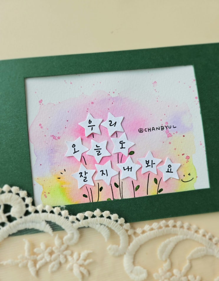 #찬별_끄적임 펀칭기를 사용하고 나온 별 조각들이 눈에 들어와, 꽃으로 만들어줬어요 :) 조용히 흔들흔들,...