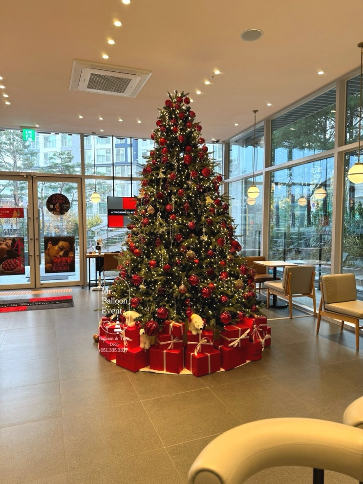 안녕하세요 크리스마스 트리 설치 전문업체 미스터벌룬이벤트입니다! 수원에 위치한 투썸플레이스 실내에 ...