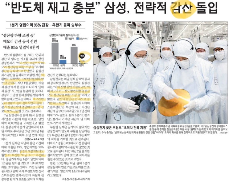 삼성 반도체 전략적 감산 공식 발표 / 경상수지 두달 연속 적자, 11년만에 -5.2억달러