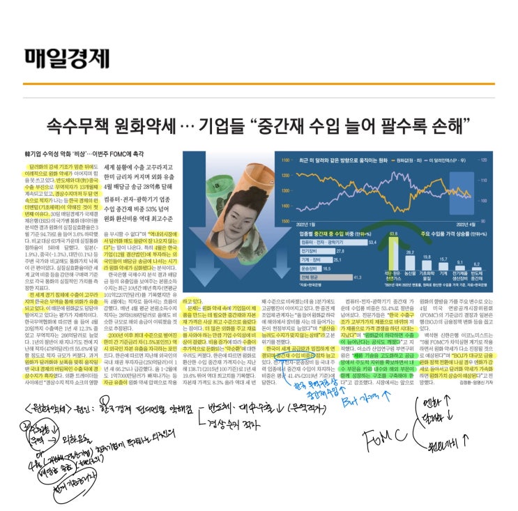[신문스크랩] 원화약세, 수출기업 수익성 악화