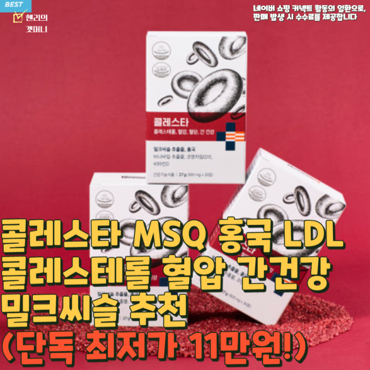 콜레스타 MSQ 홍국 LDL콜레스테롤 혈압 간건강 밀크씨슬 추천(단독 최저가 11만원!)