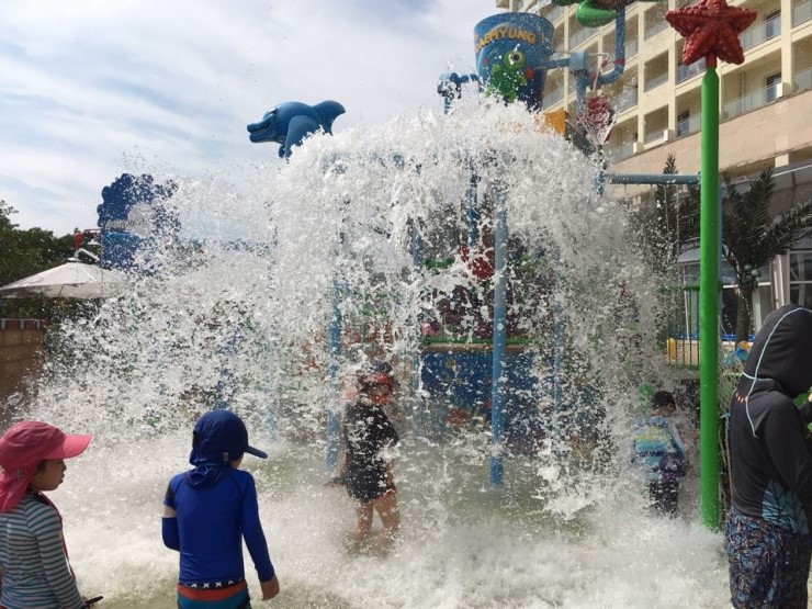 뜨겁게 내리쬐는 날씨에 아쿠아월드에서 물놀이를 한다면 잠시나마 이 무더위를 잊을 수 있어요 규...