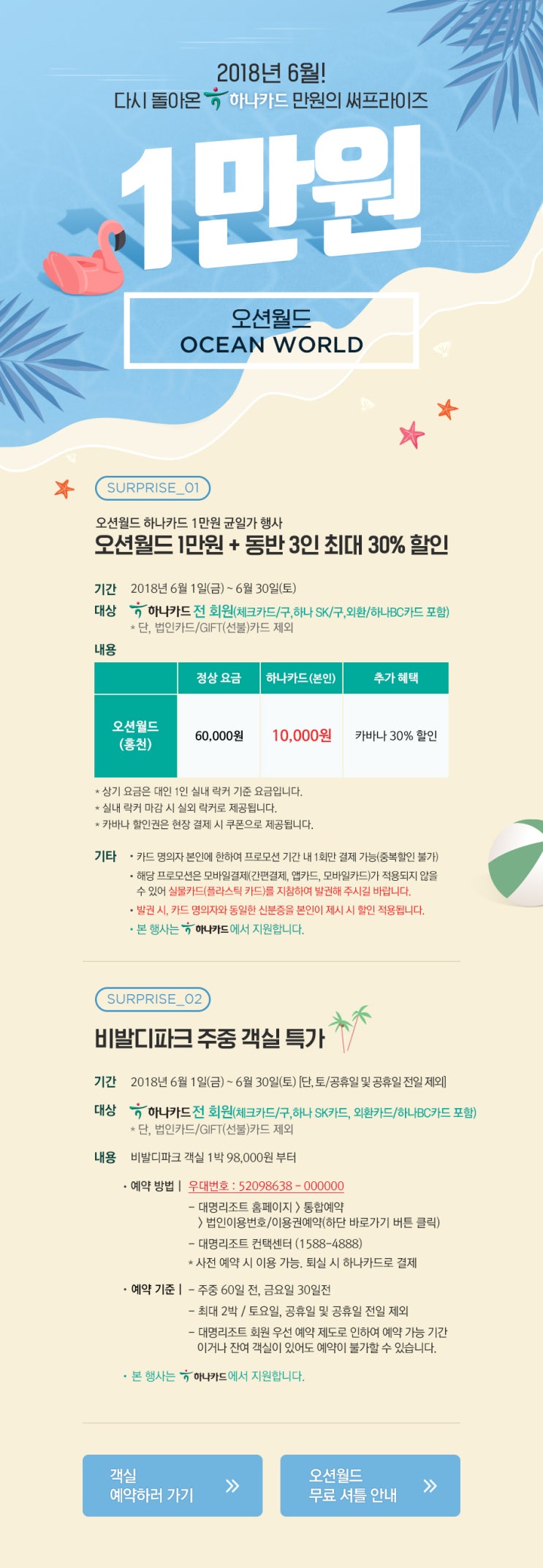 다시금 돌아 왔네요. 2018 오션월드 만원의 행복!!! (하나카드 만원의 써프라이즈) 기간 : 2018.06.01 ~ 20...