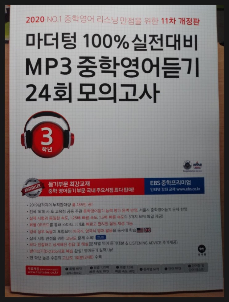 <서평>(11차 개정) 마더텅 100% 실전대비 MP3 중학영어듣기 24회 모의고사